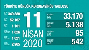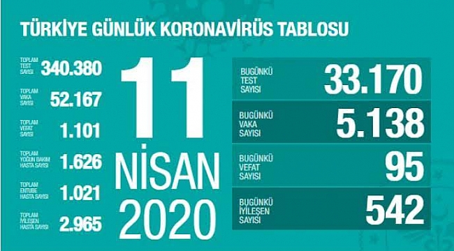 Türkiye'de toplamda bugüne kadar 340 bin 380 test yapılırken toplam vaka sayısı ise 52 bin 167'ye çıktı.